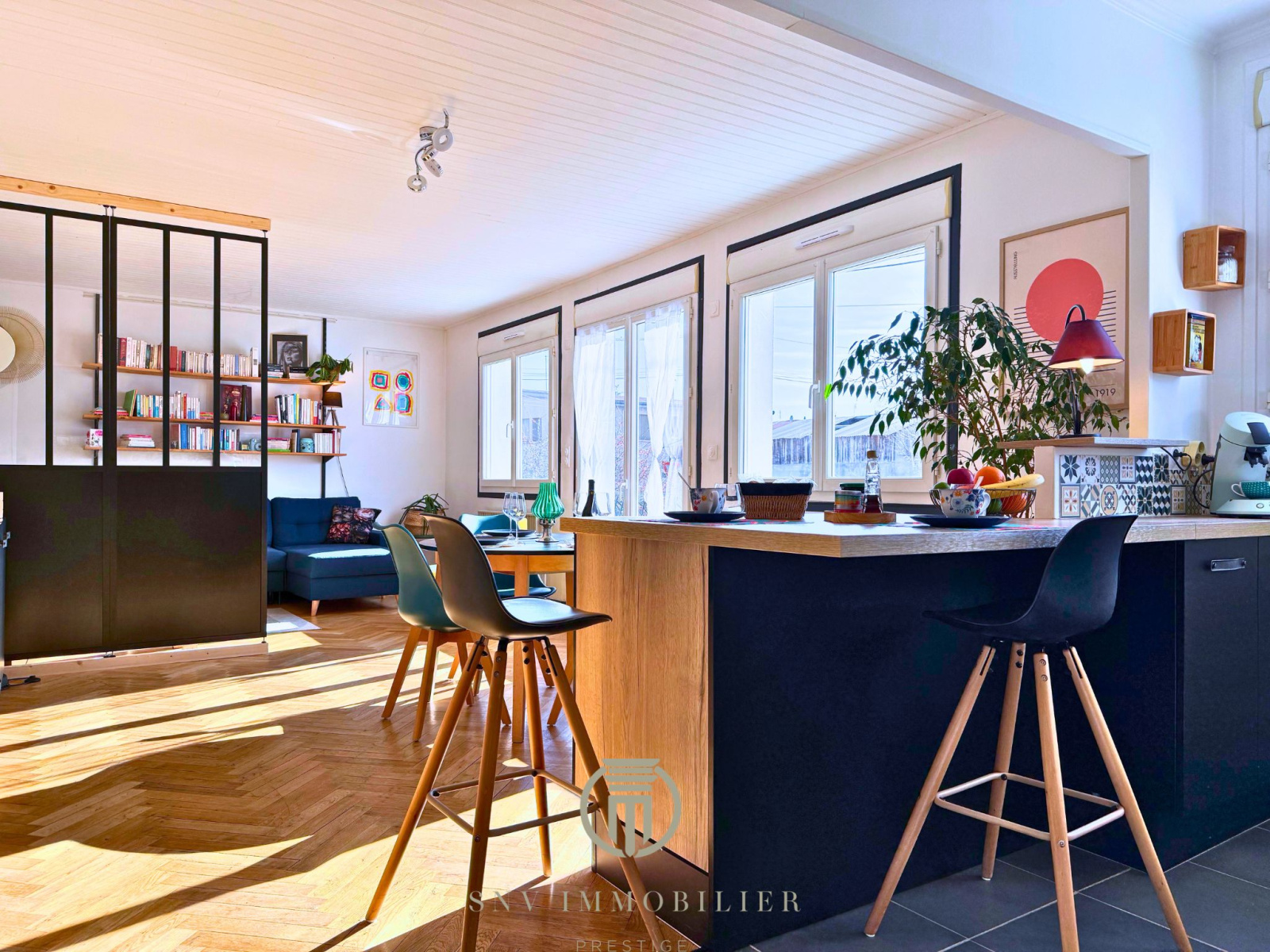 – Une grande pièce de vie ouverte, avec un salon séjour et accès au balcon, ainsi qu’une cuisine avec îlot central récent et de nombreux rangements