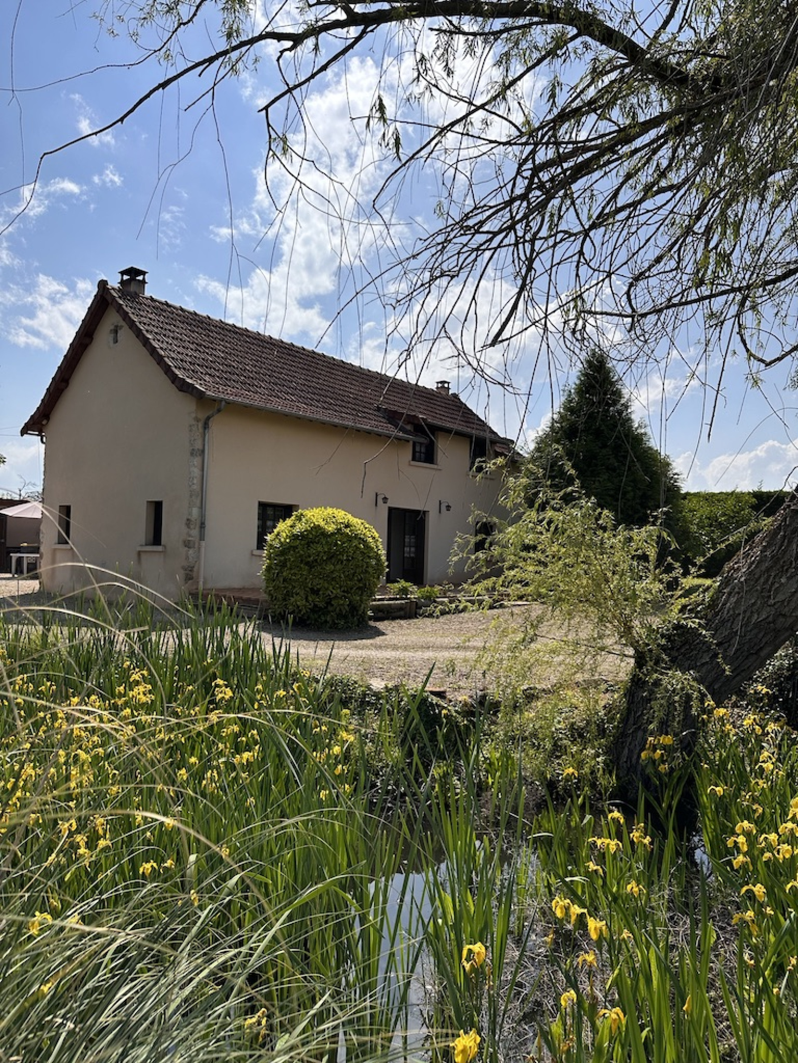 Venez découvrir cette charmante maison de campagne à seulement 20 min de MOULINS, 10 min de SAINT POURÇAIN SUR SIOULE dans le VAL de SIOULE et 4 heures de Paris. Côté intérieur : Au rez-de-chaussée, vous trouverez une entrée avec un coin bureau, une cuisine semi-équipée, un salon toit cathédrale, salle de bain et WC séparé. Une pièce supplémentaire en dépendance pour un atelier ou salle de sport ... Au premier, une mezzazine avec trois chambres et toilette et lavabo permettant facilement une suite parentale avec salle de bain. Côté extérieur : Une première partie de jardin avec portail électrique et clos de haies sur environs 1800 m2 avec allée privative, mare et son ponton, deux garages, puits ainsi qu'une cave voûtée et chaufferie. Paddock attenant d'1h100 idéal pour propriétaires de chevaux et amoureux de la nature, au calme. Côté technique : Huisseries en bois et survitrage. Chauffage principal au fioul (chaudière de 2014 et révisée en mai 2023). Cheminée dans le salon. Assainissement individuel (fosse septique). Le bien est à rafraîchir mais parfaitement habitable en l'état. Idéal maison de vacances, maison familiale, résidence secondaire, primo-accédants, propriété équestre. Taxes foncières : 535 euros Prix : 153 000 € frais d'agence inclus