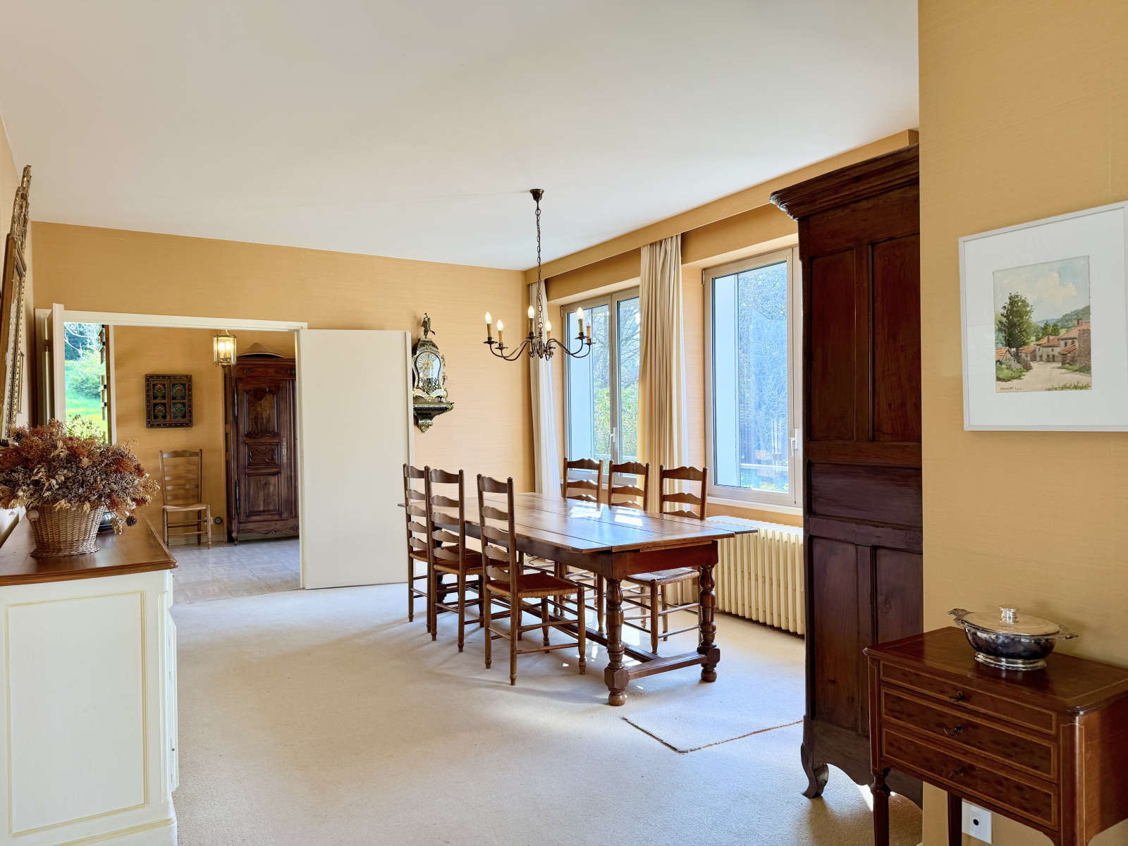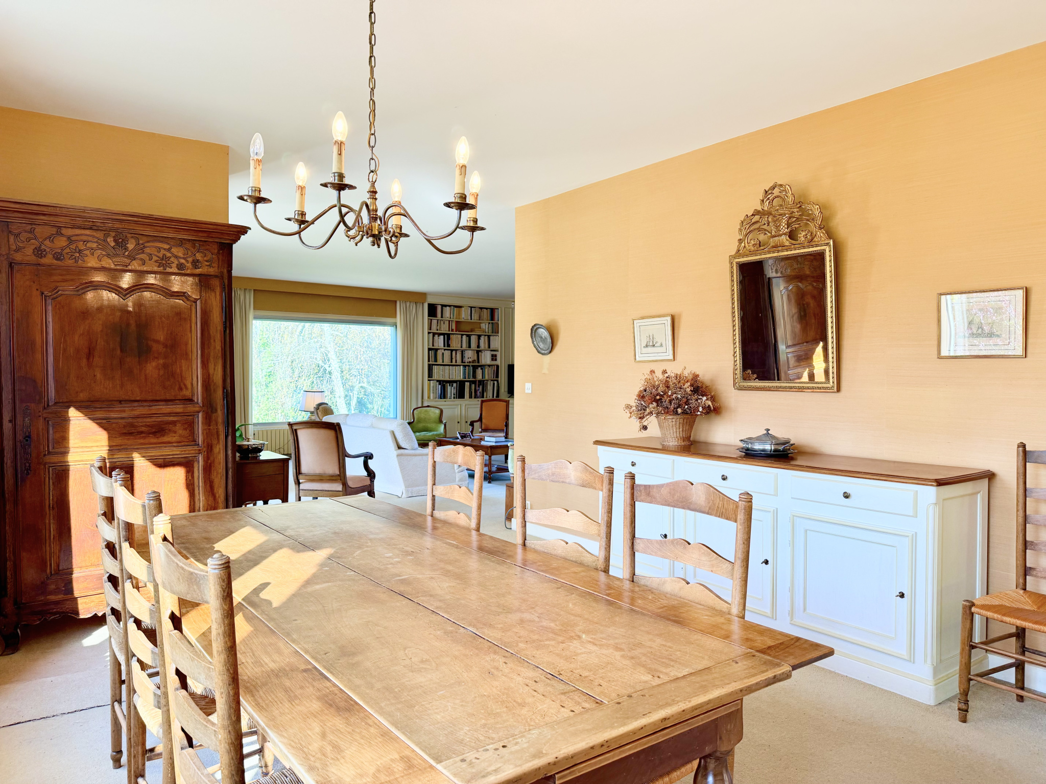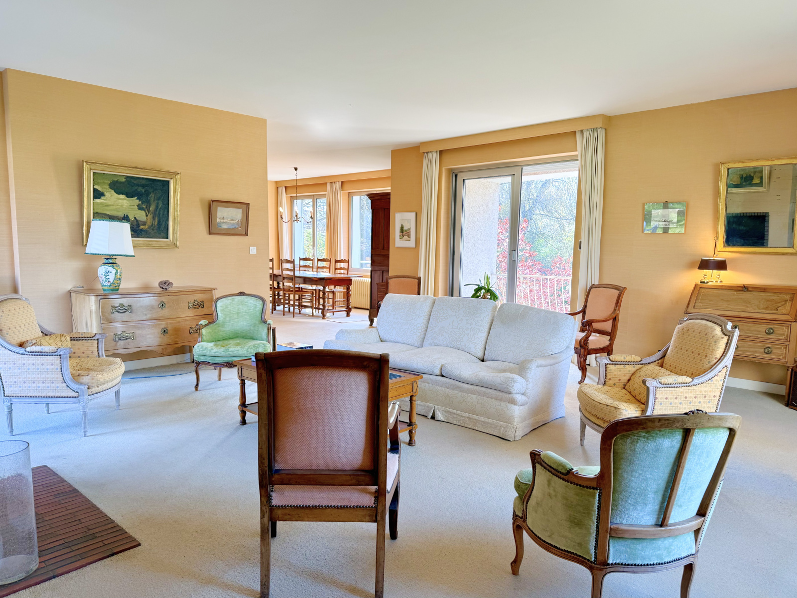 Grande pièce de vie lumineuse avec salon et salle à manger