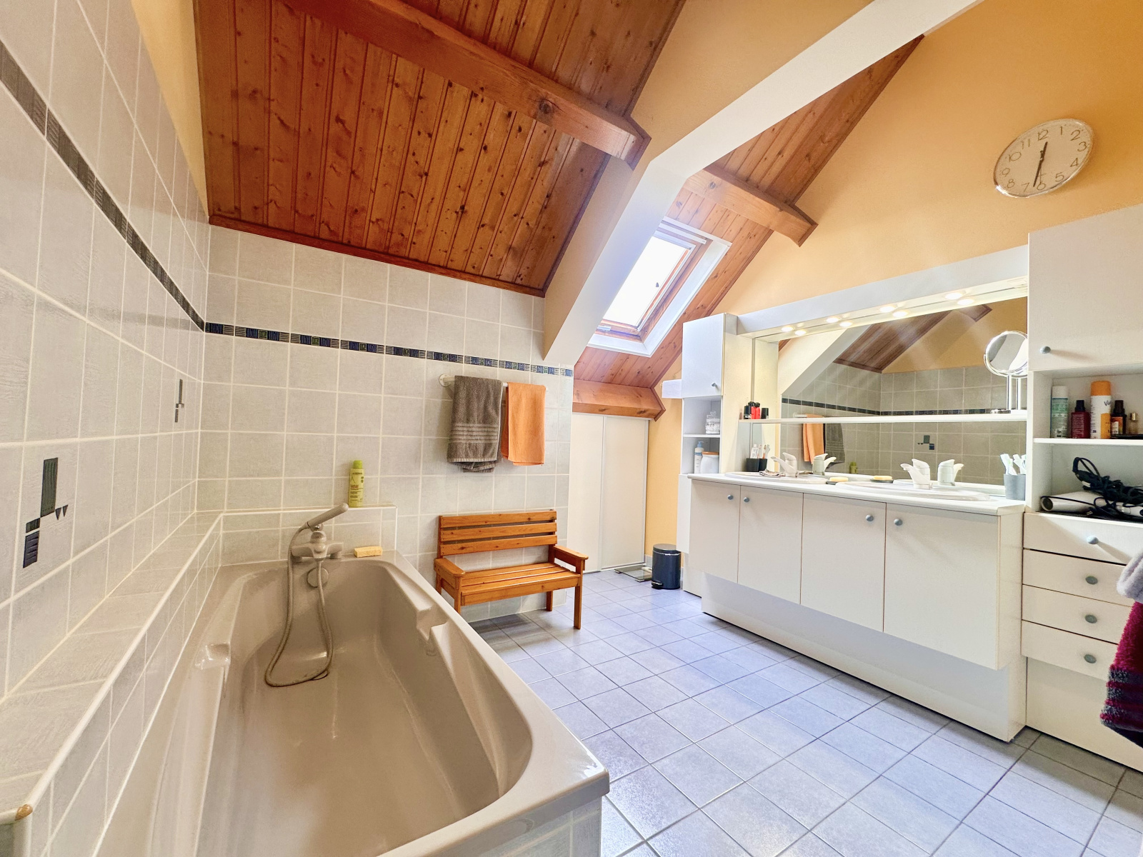 deux grandes chambres très lumineuses séparées par la salle de bain comprenant à la fois une baignoire et une douche avec meuble double vasque