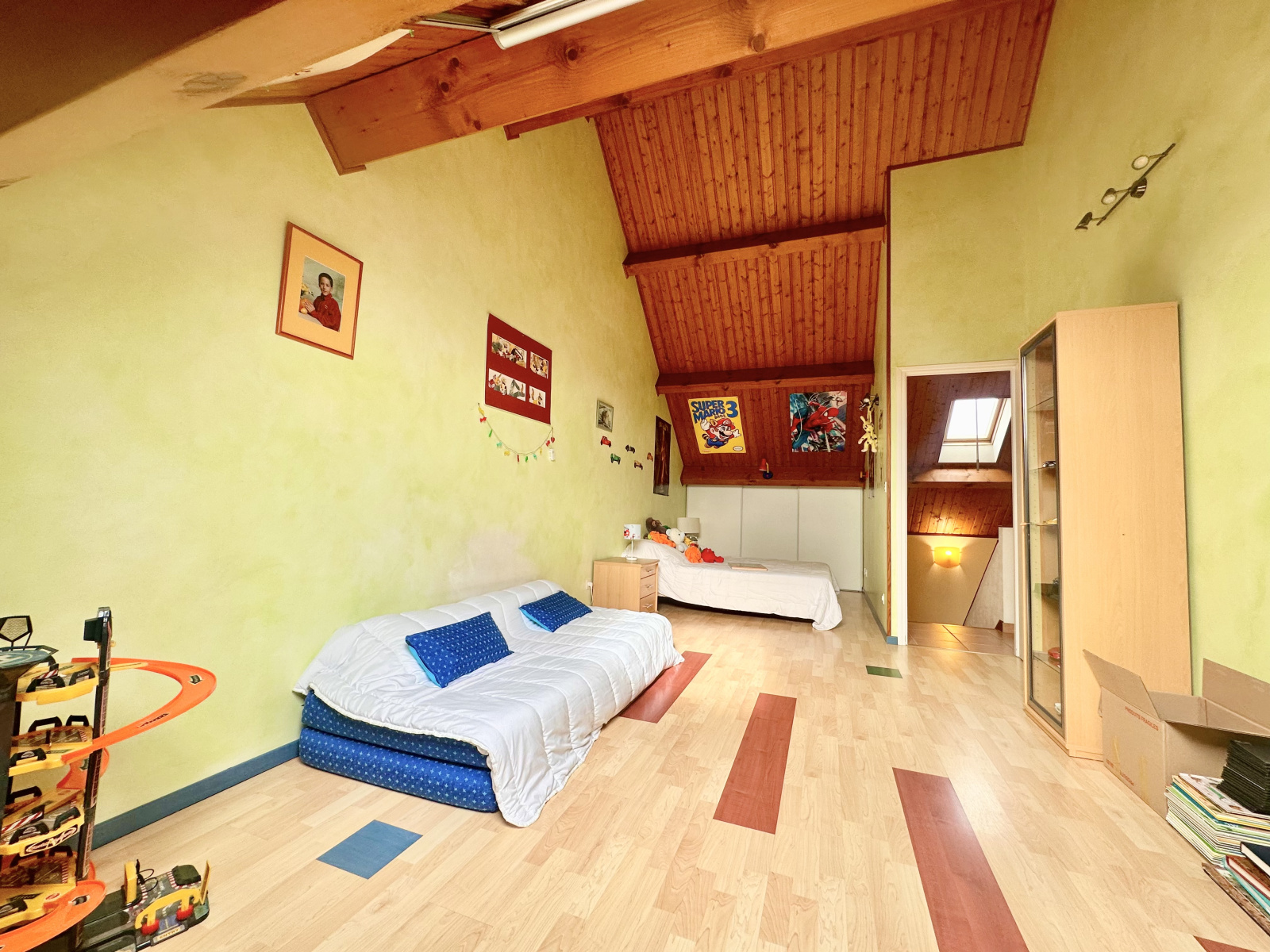 - avec un accès direct depuis la buanderie vous retrouverez un double garage avec accès à la cave et également à des combles aménageables