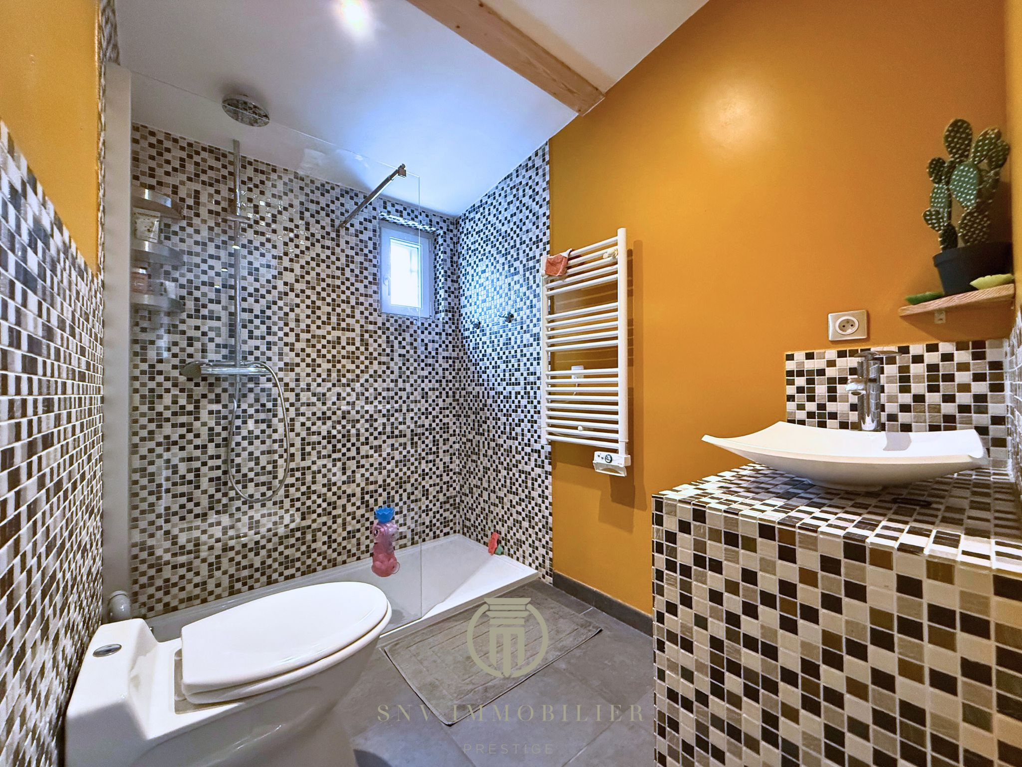 - Une salle d’eau avec douche, meuble vasque et WC permettant une vie de plain-pied