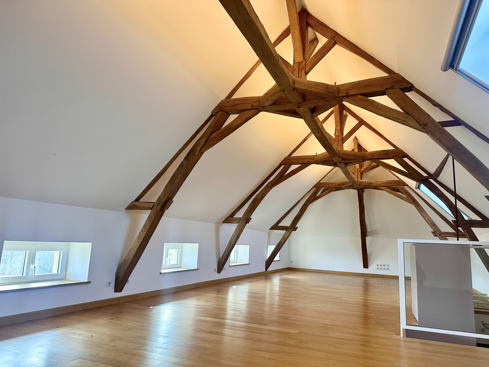 - découvrez une grande pièce avec charpente apparente de 77 m2 pour continuer de développer les atouts de cette maison
