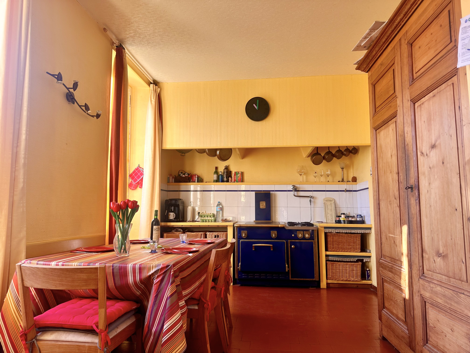 - une belle cuisine comprenant un piano de cuisine avec de la tomette et une belle hauteur sous-plafond