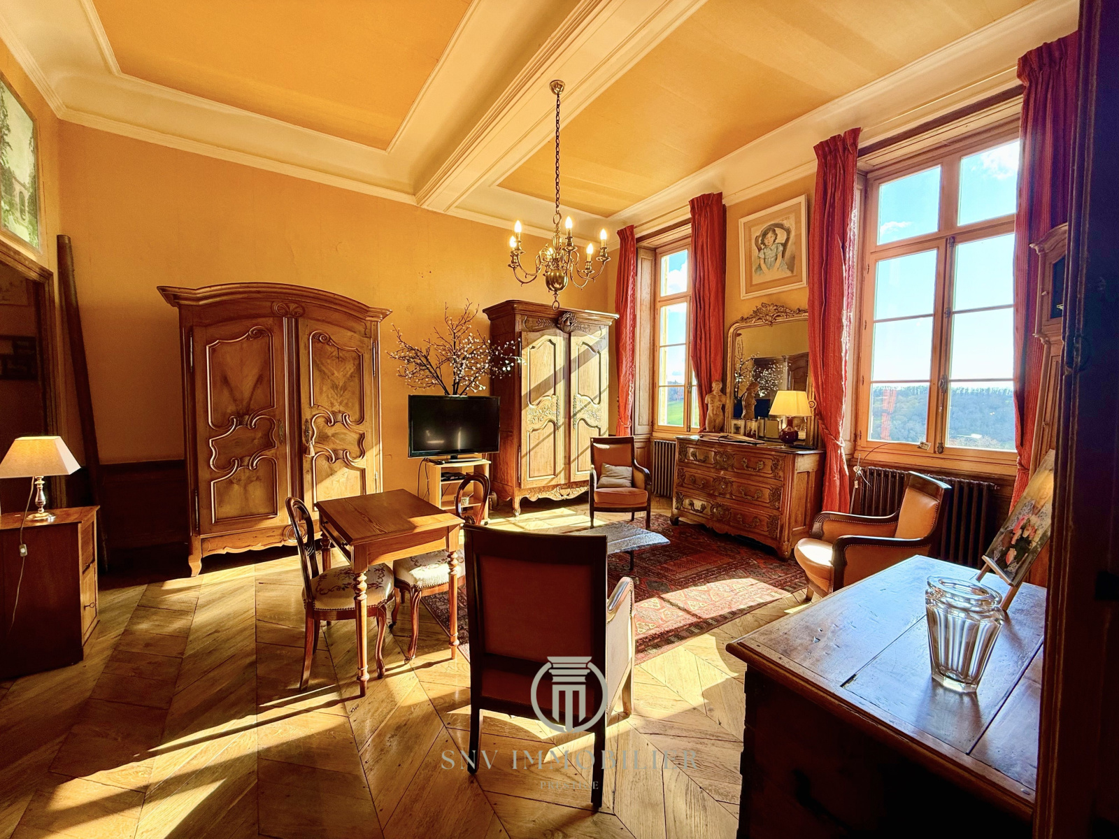 - une immense suite parentale climatisée conçue tel un appartement privé avec des volumes généreux et une grand hauteur sous plafond, vue exceptionnelle et sol en parque pointe de Hongrie et volets intérieurs, on retrouve également dans cette suite une douche, WC et meuble vasque ainsi qu'un bureau privé au-dessus de la poterne