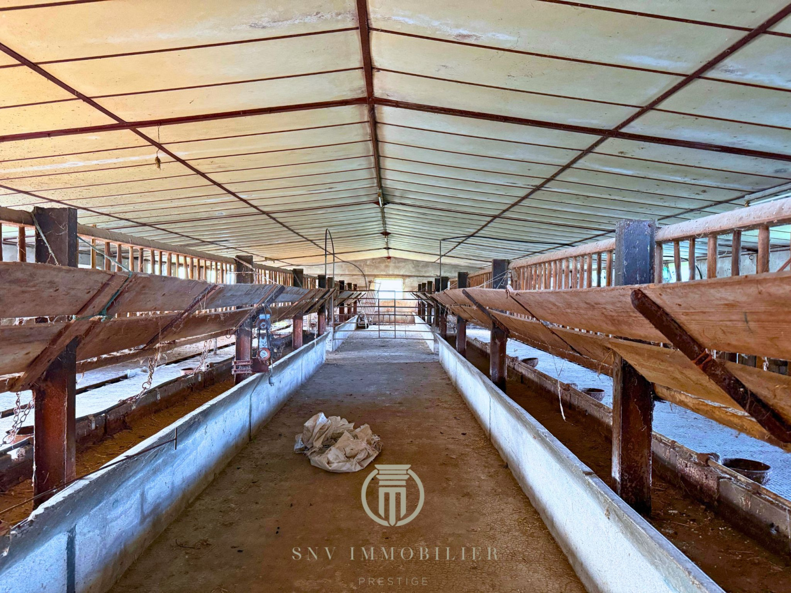 - Une étable avec un sol bétonné et un grand espace préau qui permettait le stockage des véhicules et du fourrage peut convenir de car-port également avec une hauteur permettant de stationner un van pour chevaux ou encore camping-car.
