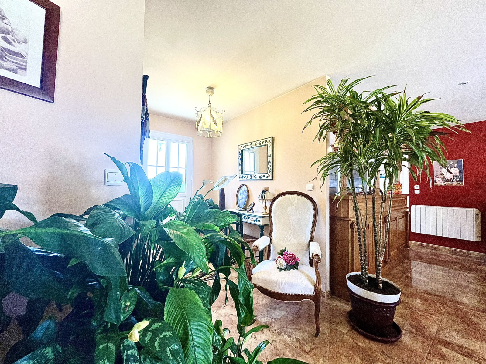 - Une cheminée avec insert bois, pour une ambiance chaleureuse en hiver, un chauffage électrique avec radiateurs en céramique en complément. Menuiseries PVC double vitrage et volets roulants électriques. Une terrasse carrelée couverte par 2 stores bannes électriques - Assainissement : tout à l’égout - Fibre