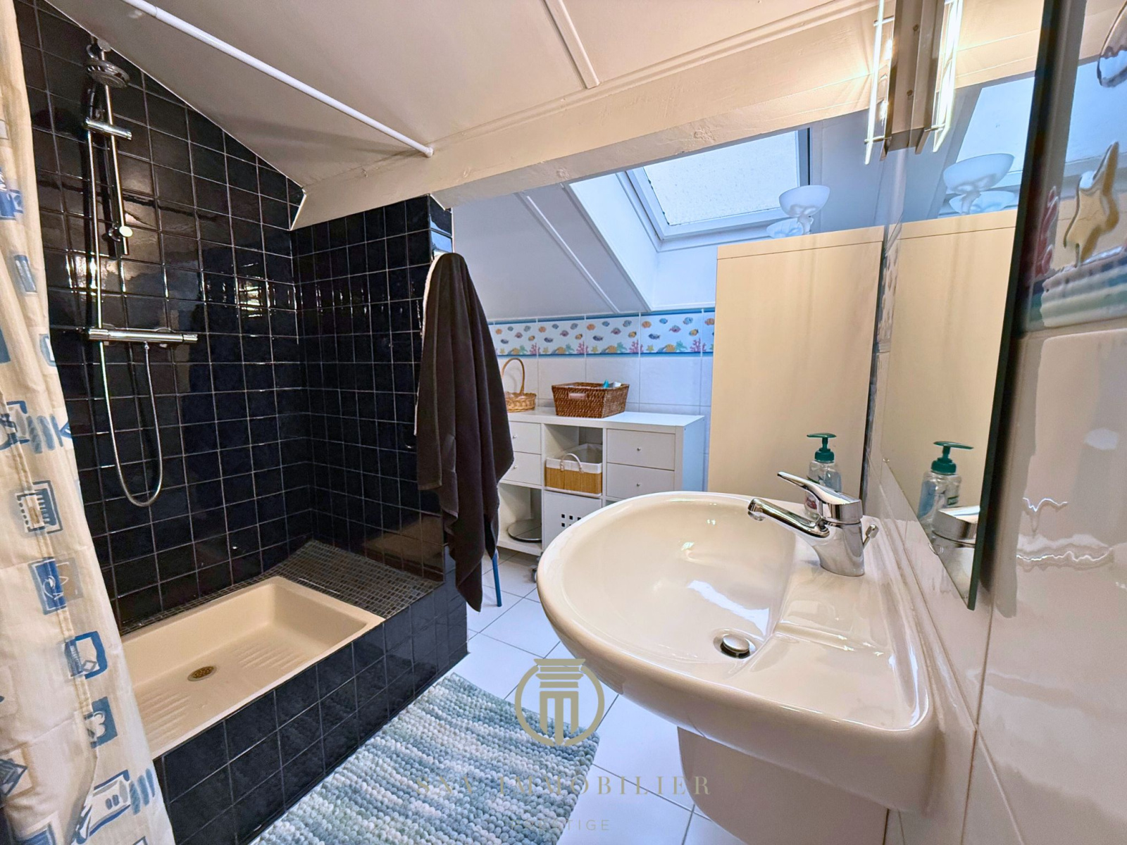 - Salle d’eau avec douche et meuble vasque