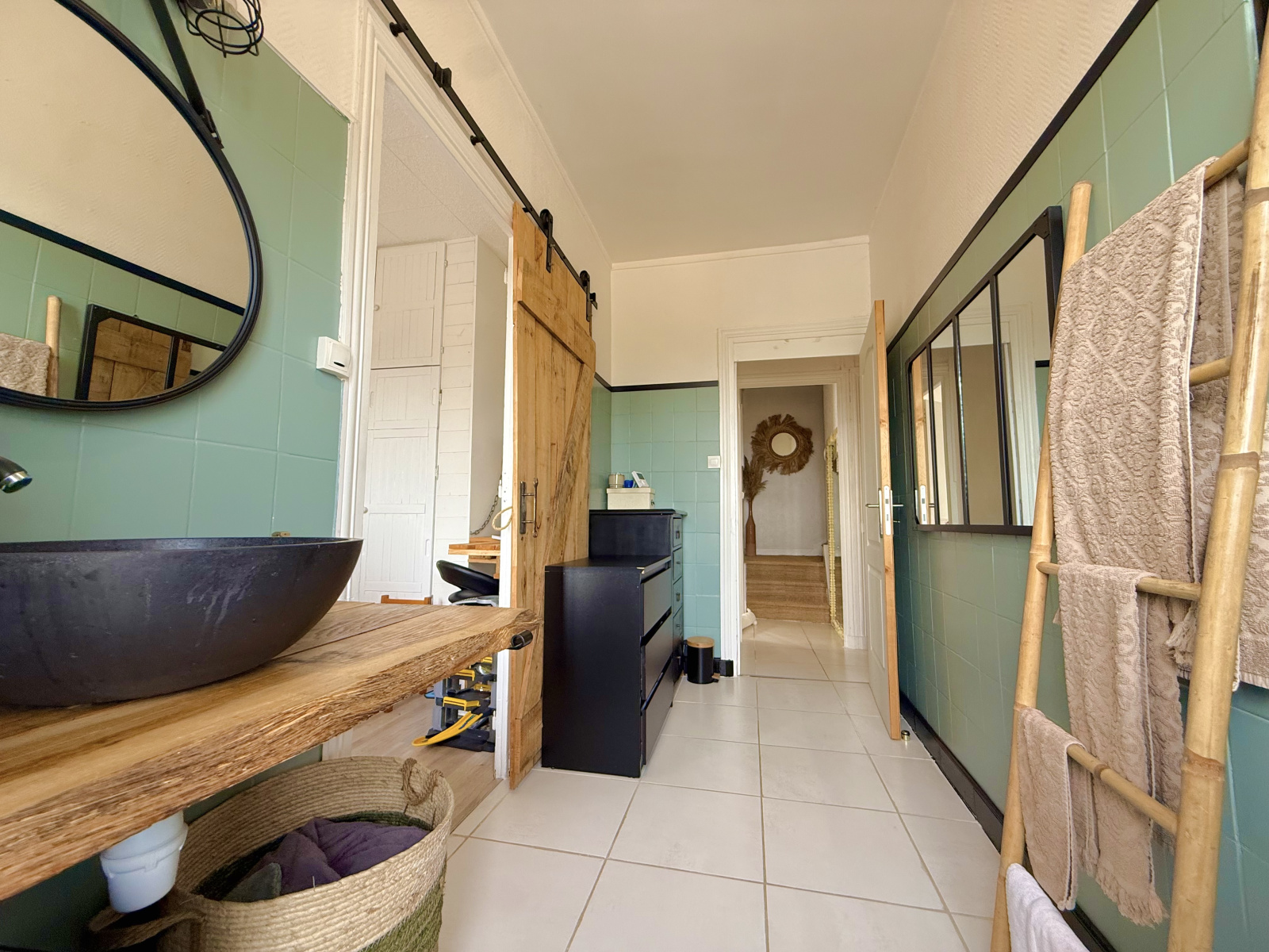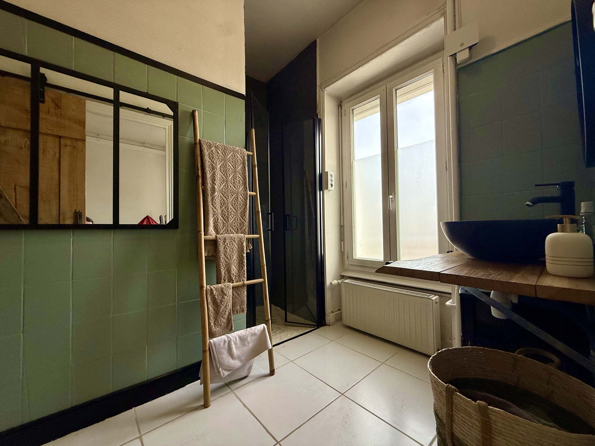 - une salle d'eau avec douche à l'italienne et meuble vasque