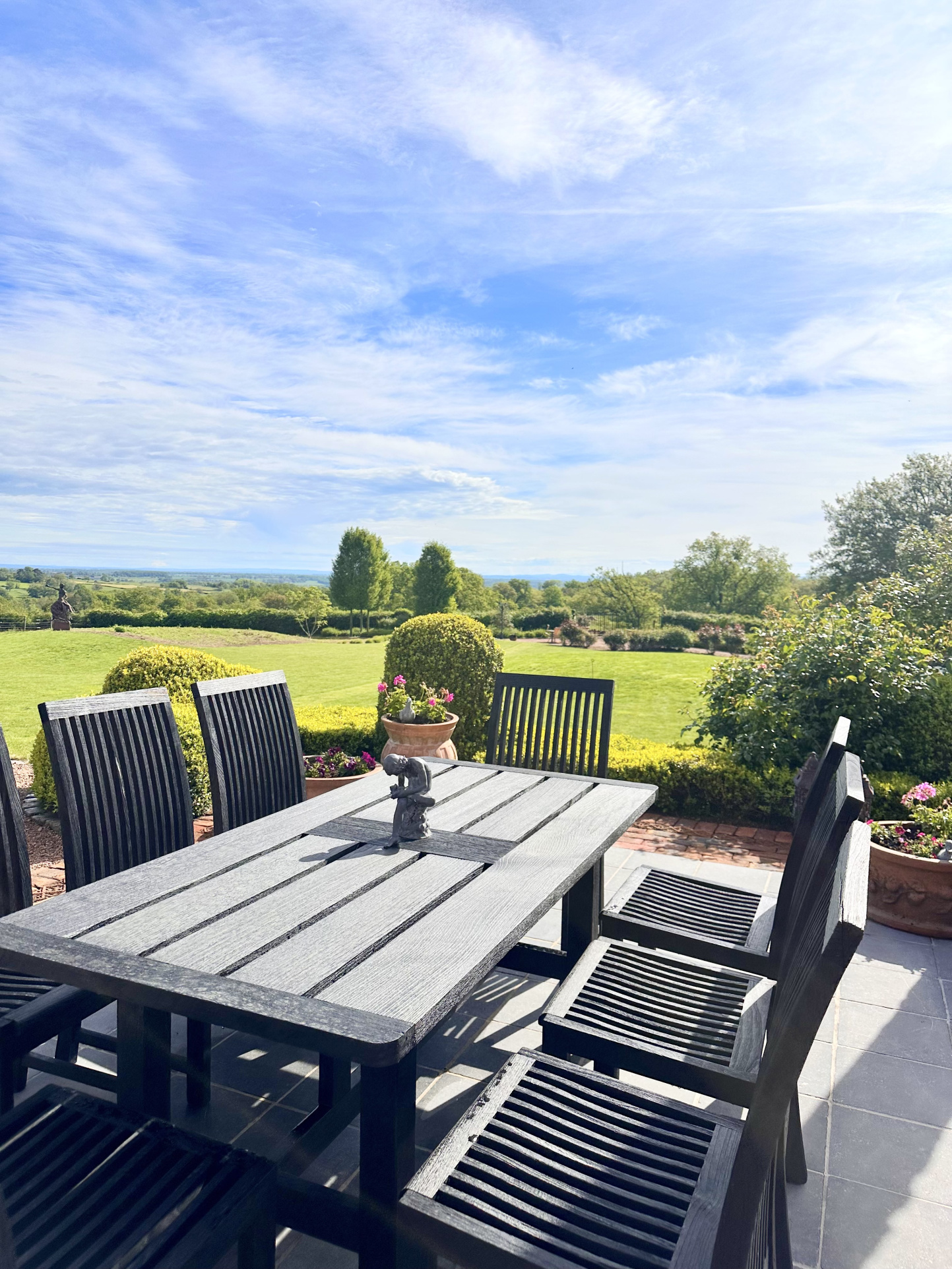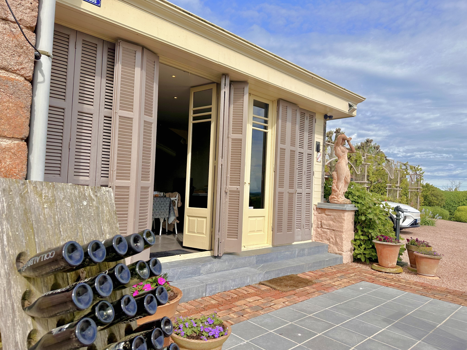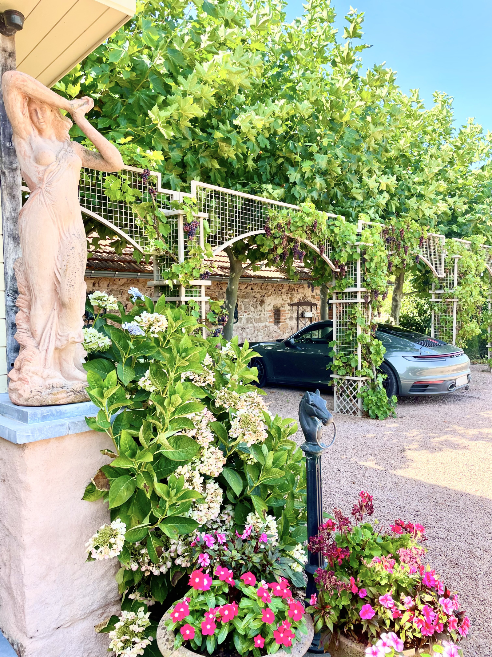 Quatre terrasses sont à votre disposition, ainsi qu'une pergola végétalisée pour garer plusieurs véhicules en sus du garage.
