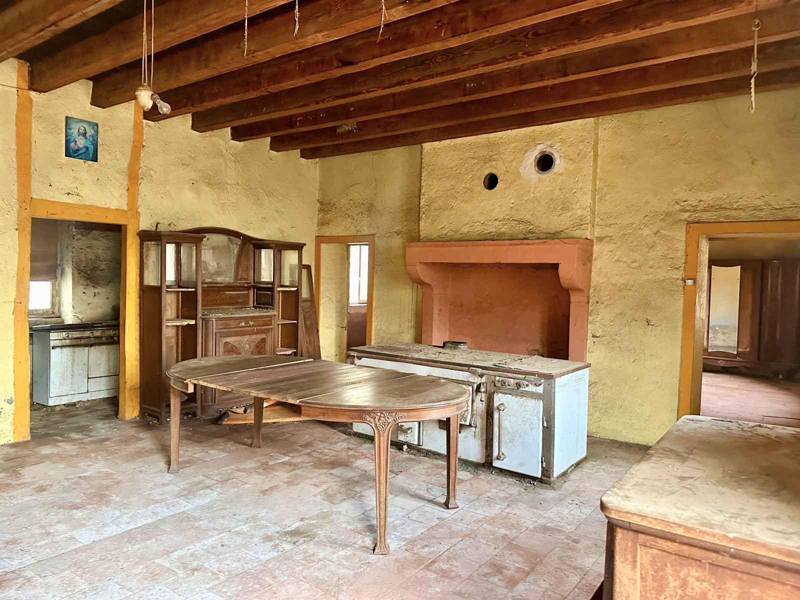 cette maison est de plain-pied d'environ 140 m2 avec des tomettes anciennes de Bourgogne, une grande pièce de vie salon-séjour puis une cuisine, Wc ainsi que trois chambres avec de beaux volumes.