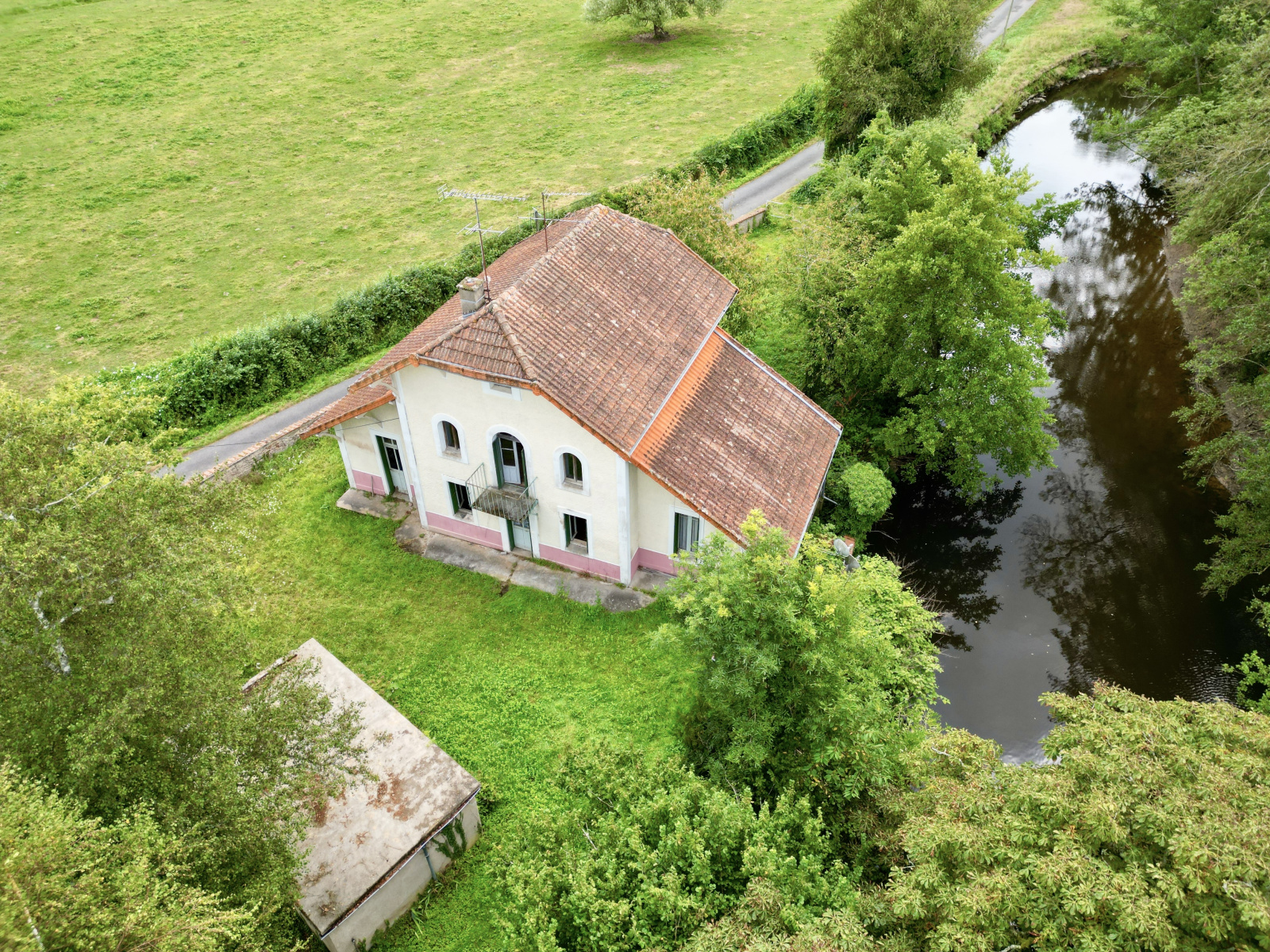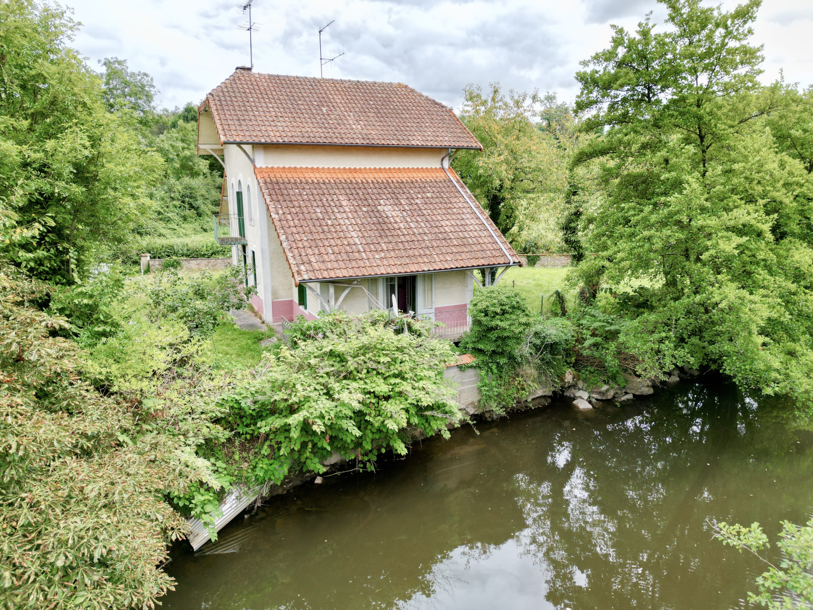 Vous trouverez également un espace chaufferie / cave ainsi qu'une terrasse couverte au bord de la rivière