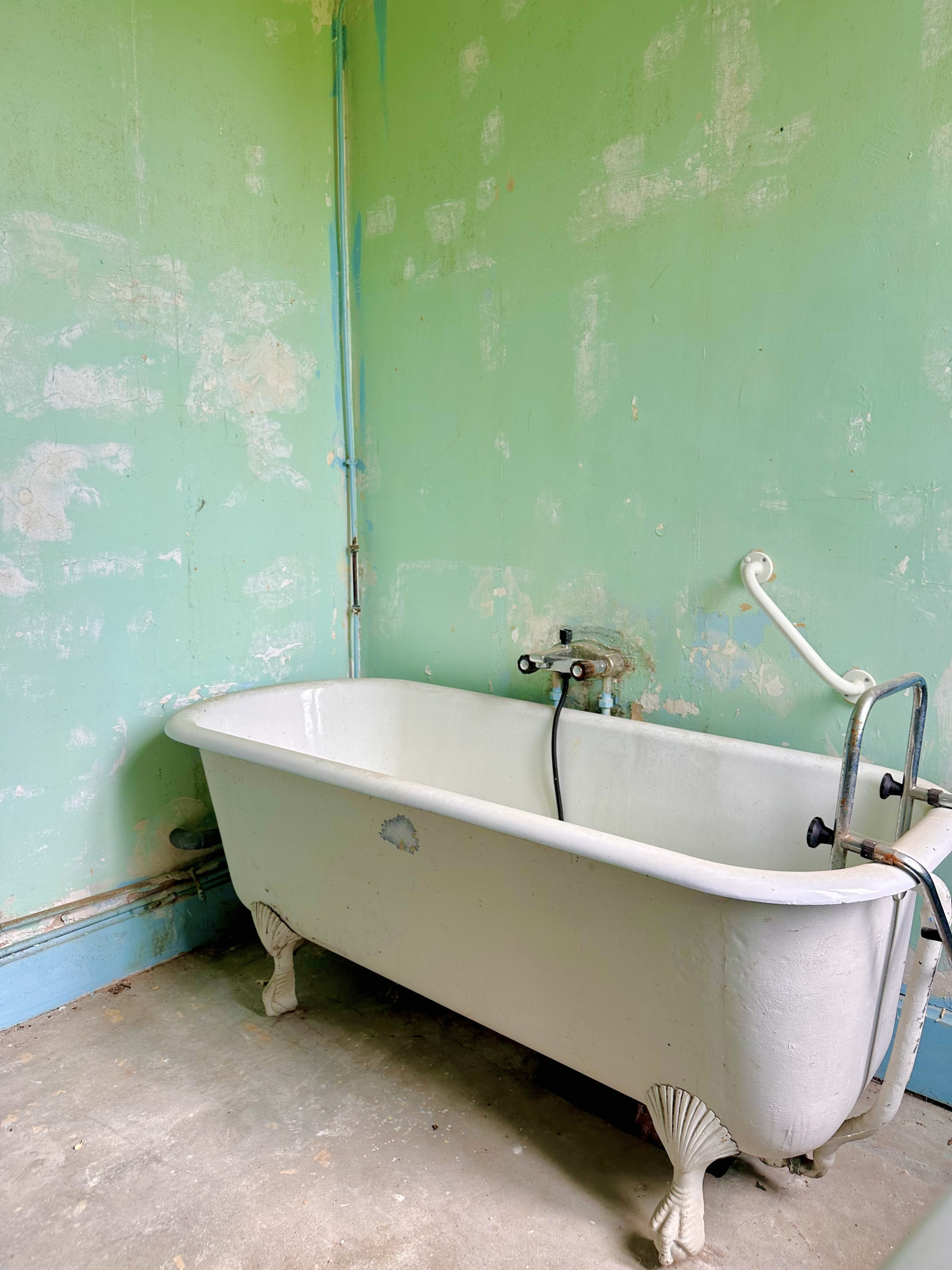 - une salle de bain avec baignoire d'époque et lavabo